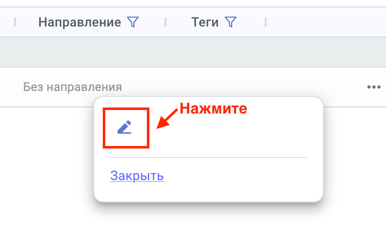 Нажмите значок Карандаш, чтобы создать новый тег.