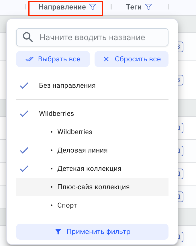 Фильтрация операций по конкретным статьям доходов или расходов.