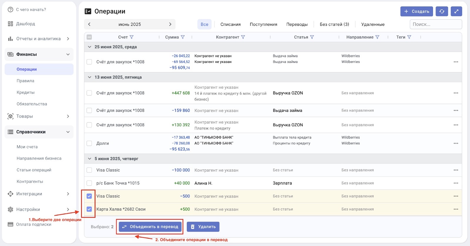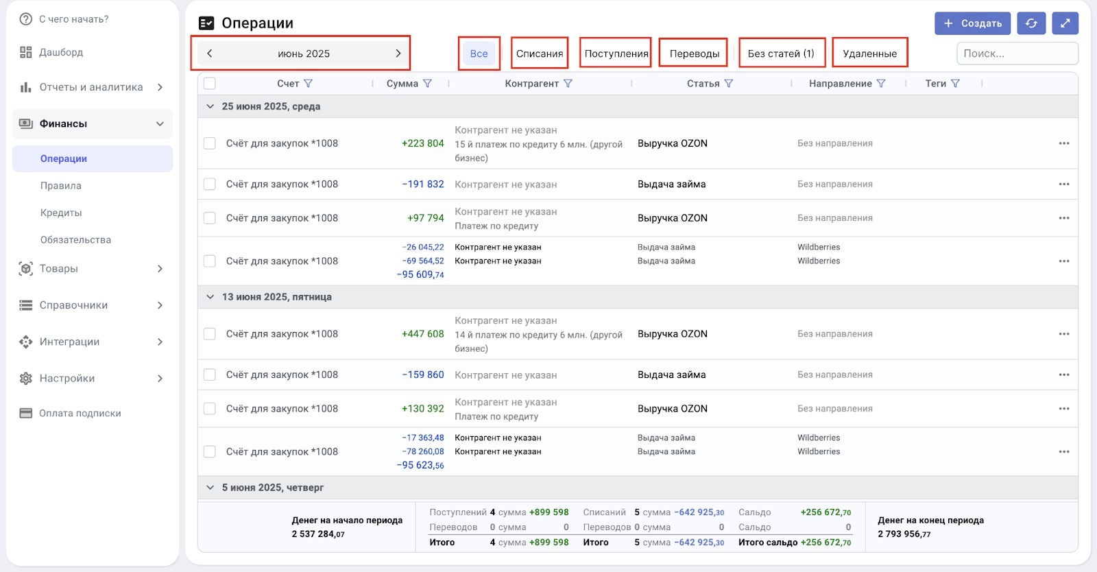 Журнал операций — это центральное место учета и анализа всех денежных движений в сервисе. Используйте фильтры, теги и разбивку, чтобы управлять финансами более эффективно и точно.