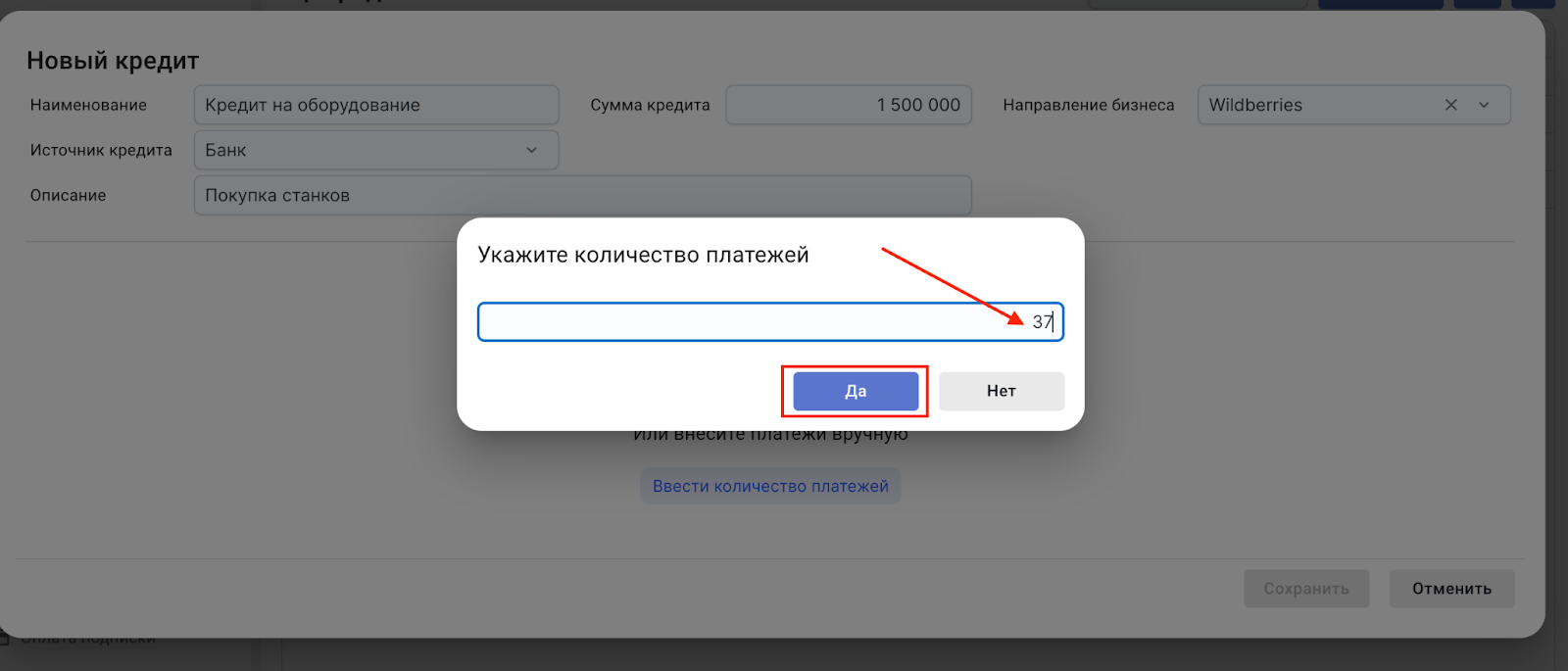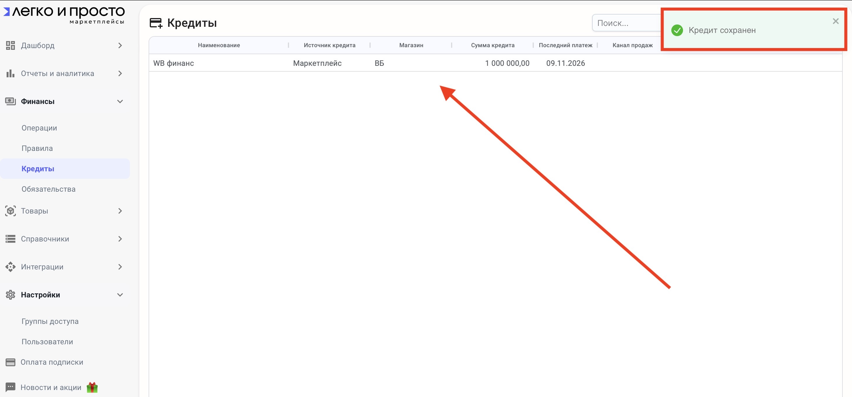 После проверки нажмите «Сохранить» — кредит будет добавлен в систему