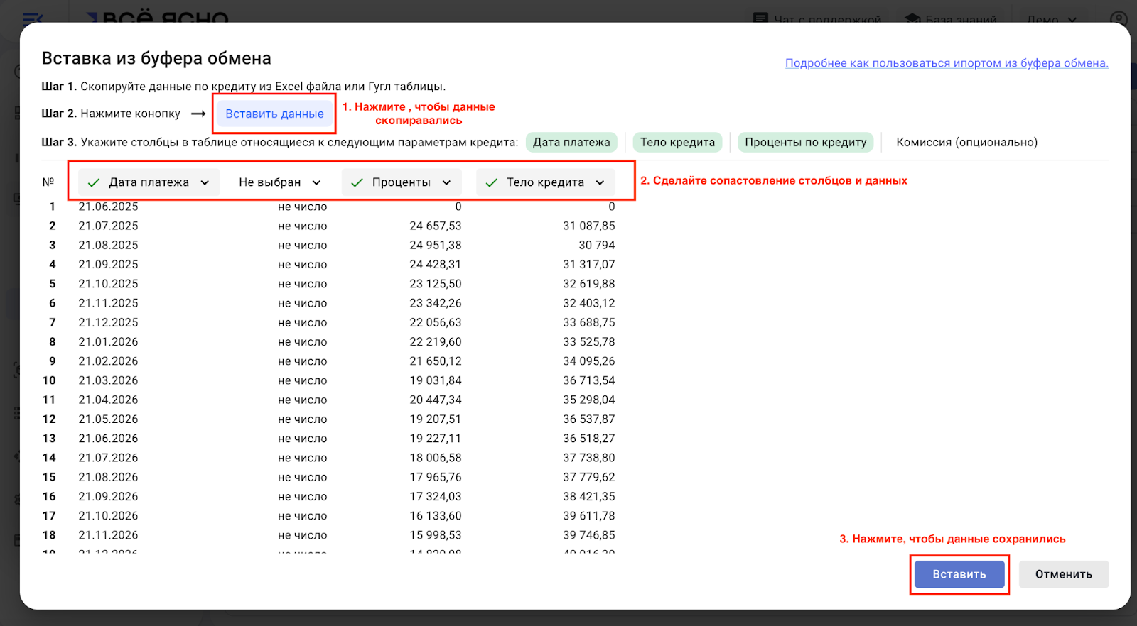 Сервис автоматически проверит, совпадает ли сумма кредита с суммой всех выплат
