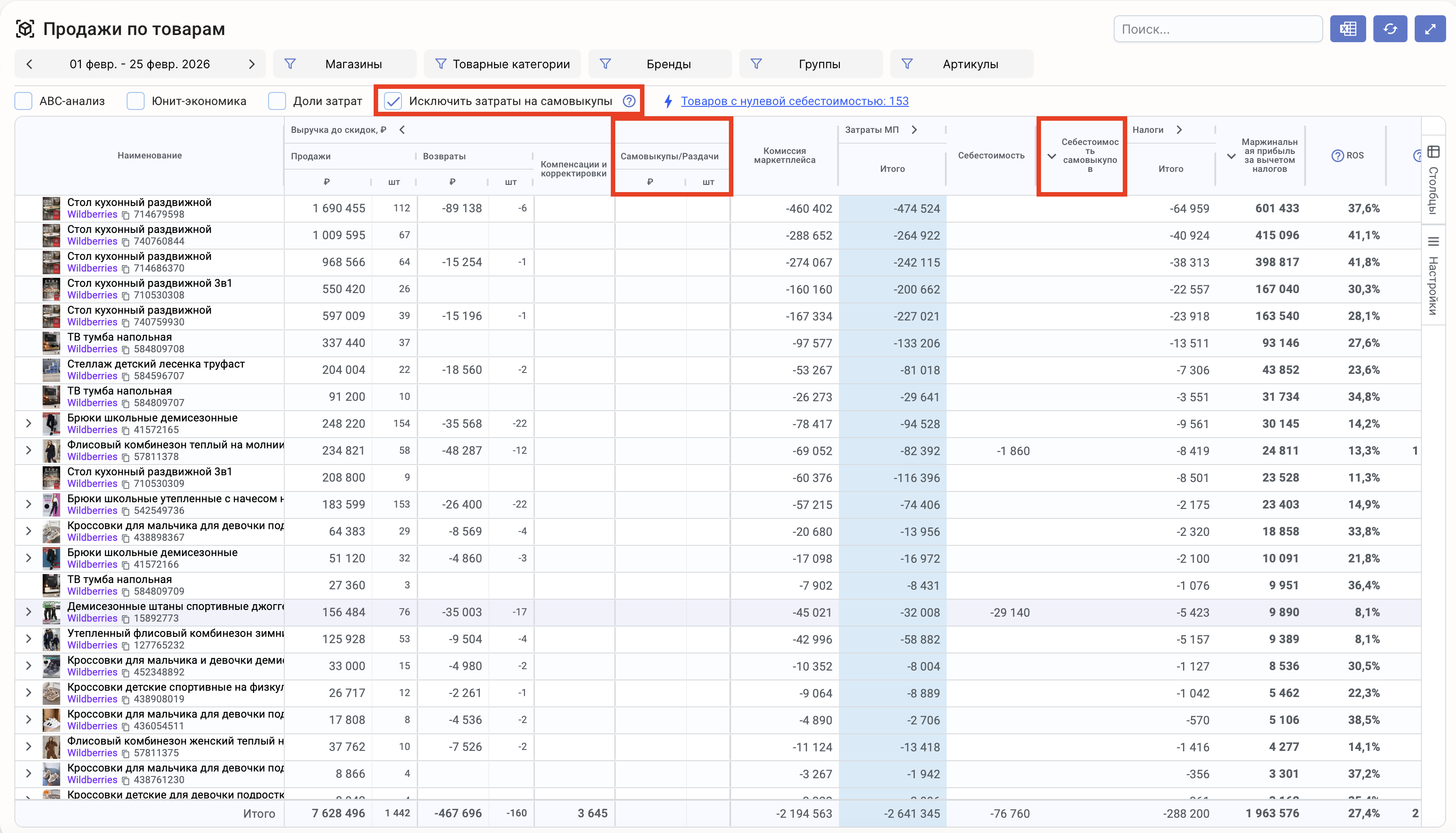 Это главный инструмент для анализа «чистой» картины. В интерфейсе отчета есть галочка «Исключить затраты по самовыкупам».