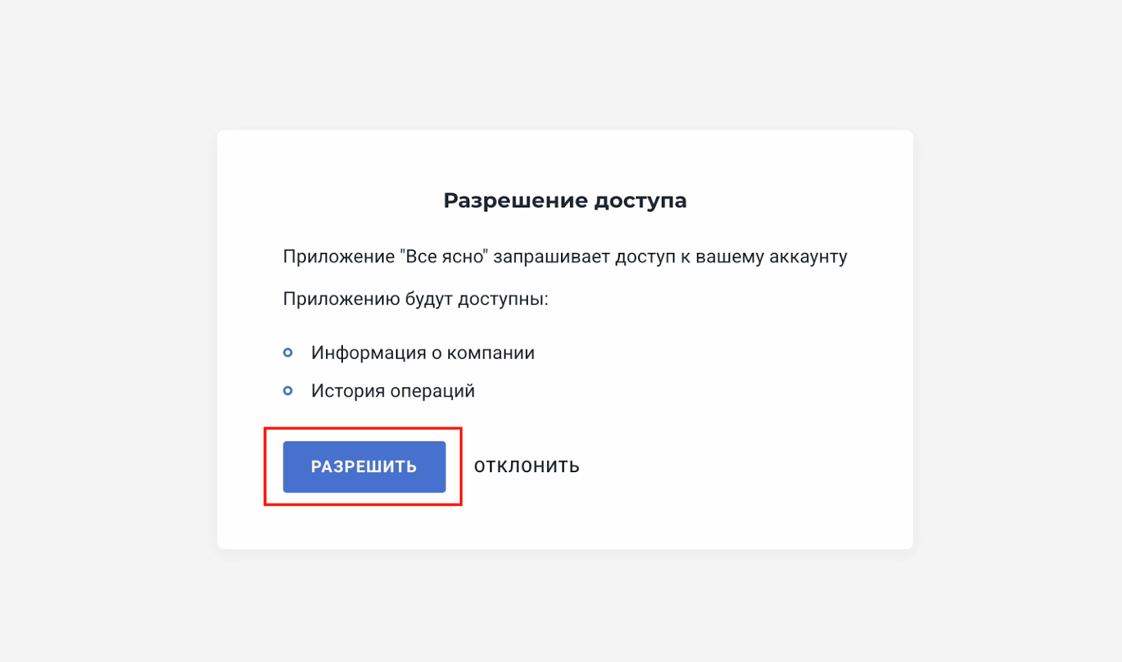 На странице Модульбанка предоставьте разрешение сервису "Легко и просто":