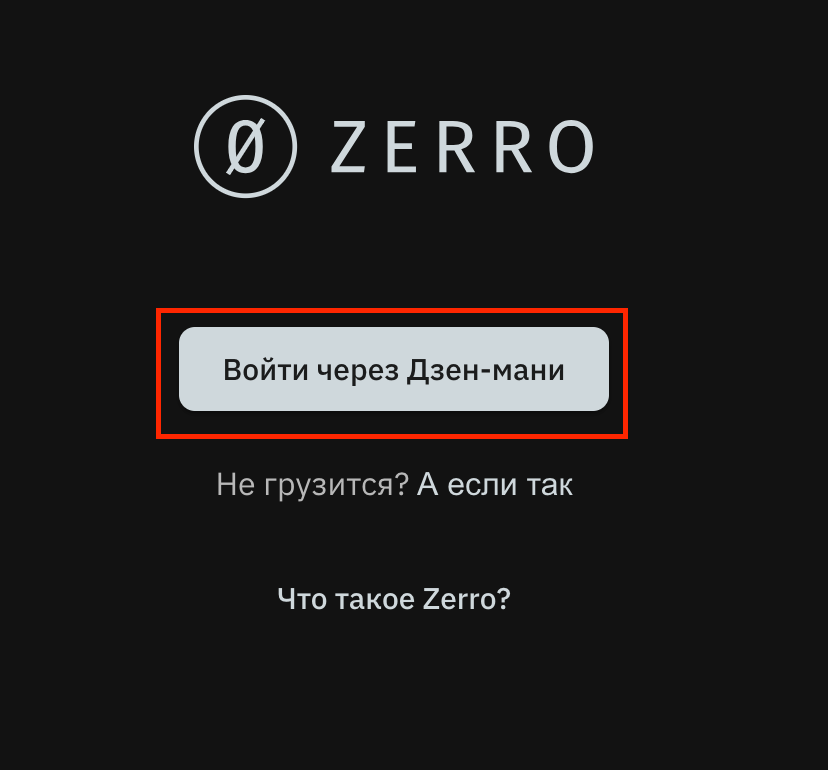 Перейдите на сайт Zerro App и авторизуйтесь, используя логин и пароль от вашего аккаунта Дзен-Мани.