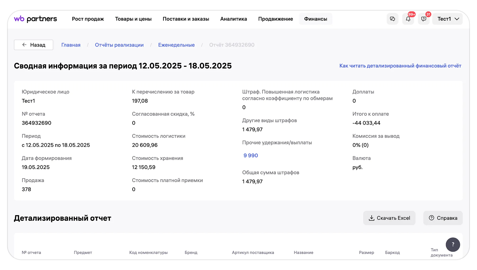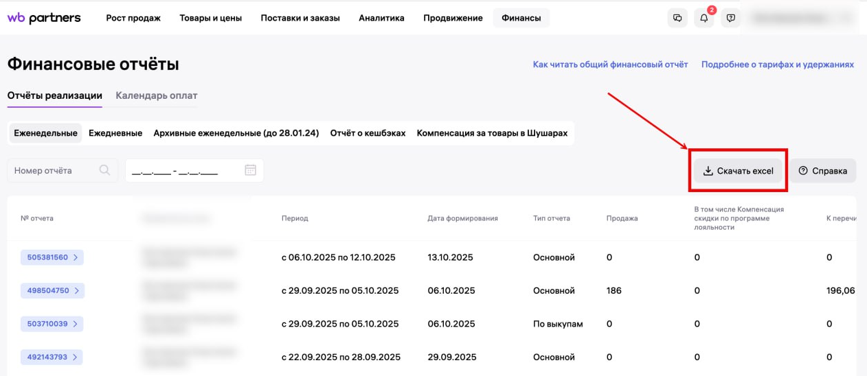 Важно: Для загрузки детализации в сервис, необходимо в первую очередь загрузить еженедельный отчет.