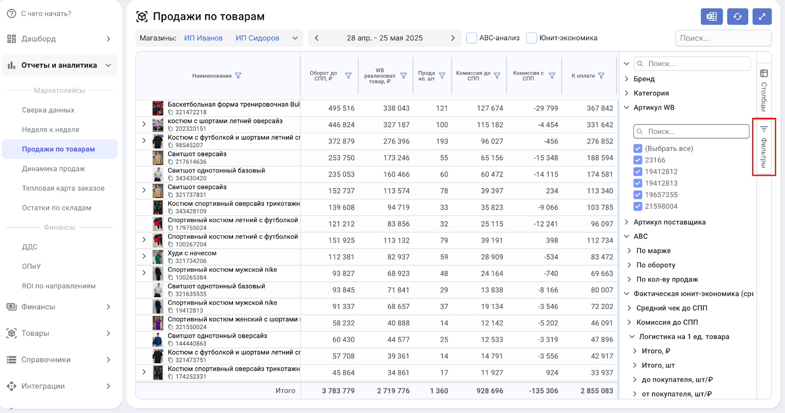 Фильтры в отчетах также можно настраивать под себя: