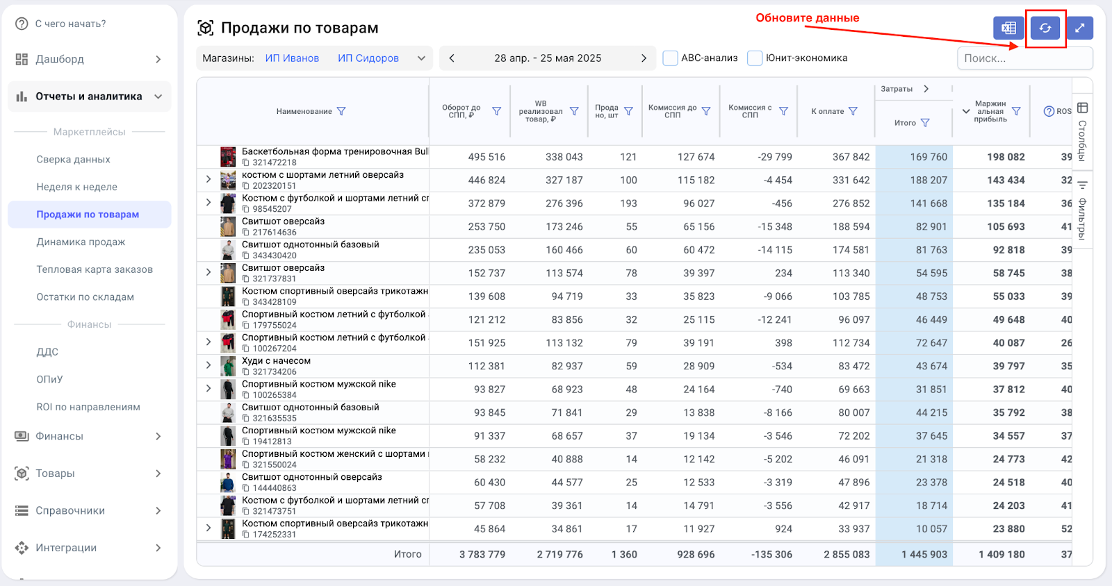 Если вы внесли изменения или загрузили новые данные, но таблица их не отображает — нажмите кнопку Обновить данные.