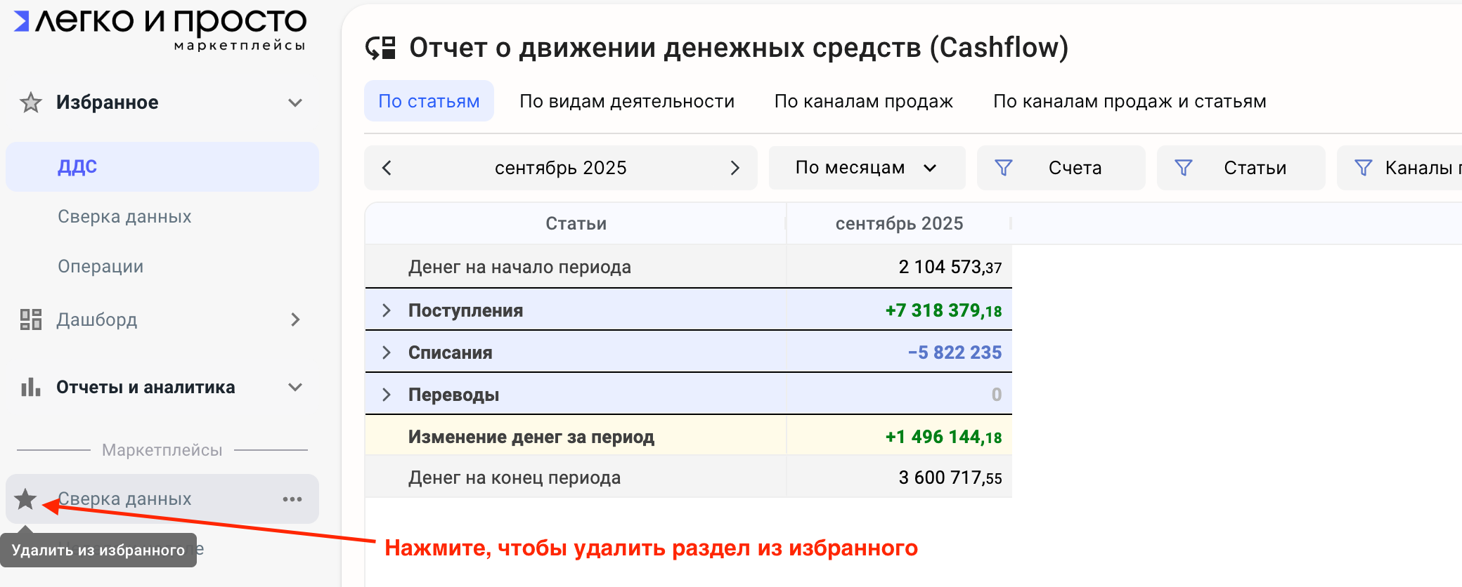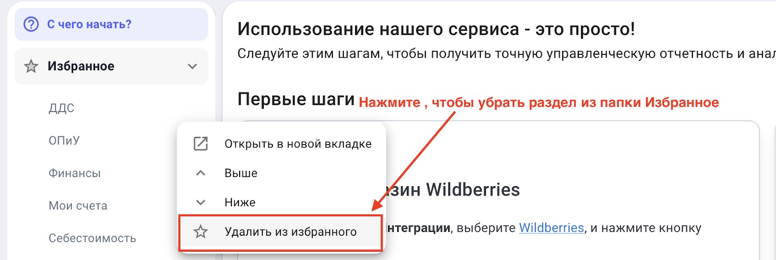 Часто используемые разделы можно добавить в Избранное: