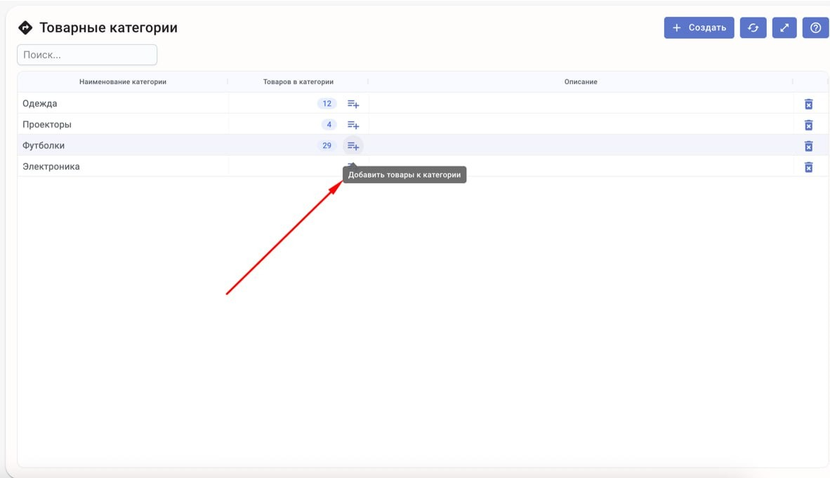Шаг 1. Перейдите в раздел Справочники - Товарные категории и нажмите Создать.