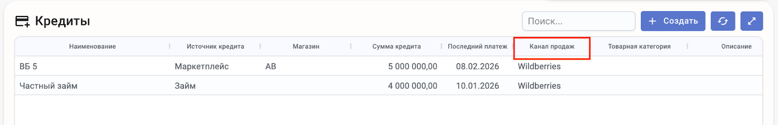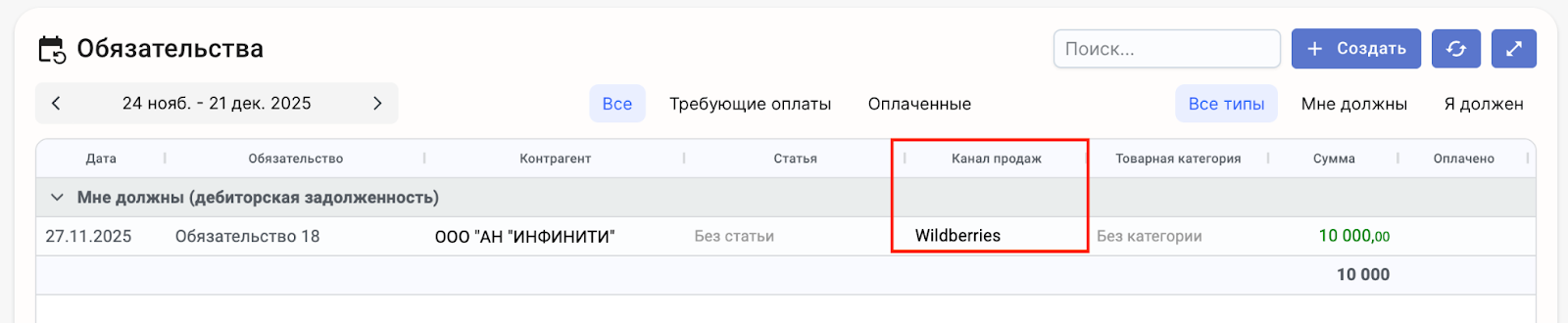 Также Обязательства и Кредиты можно привязывать к каналу продаж.
